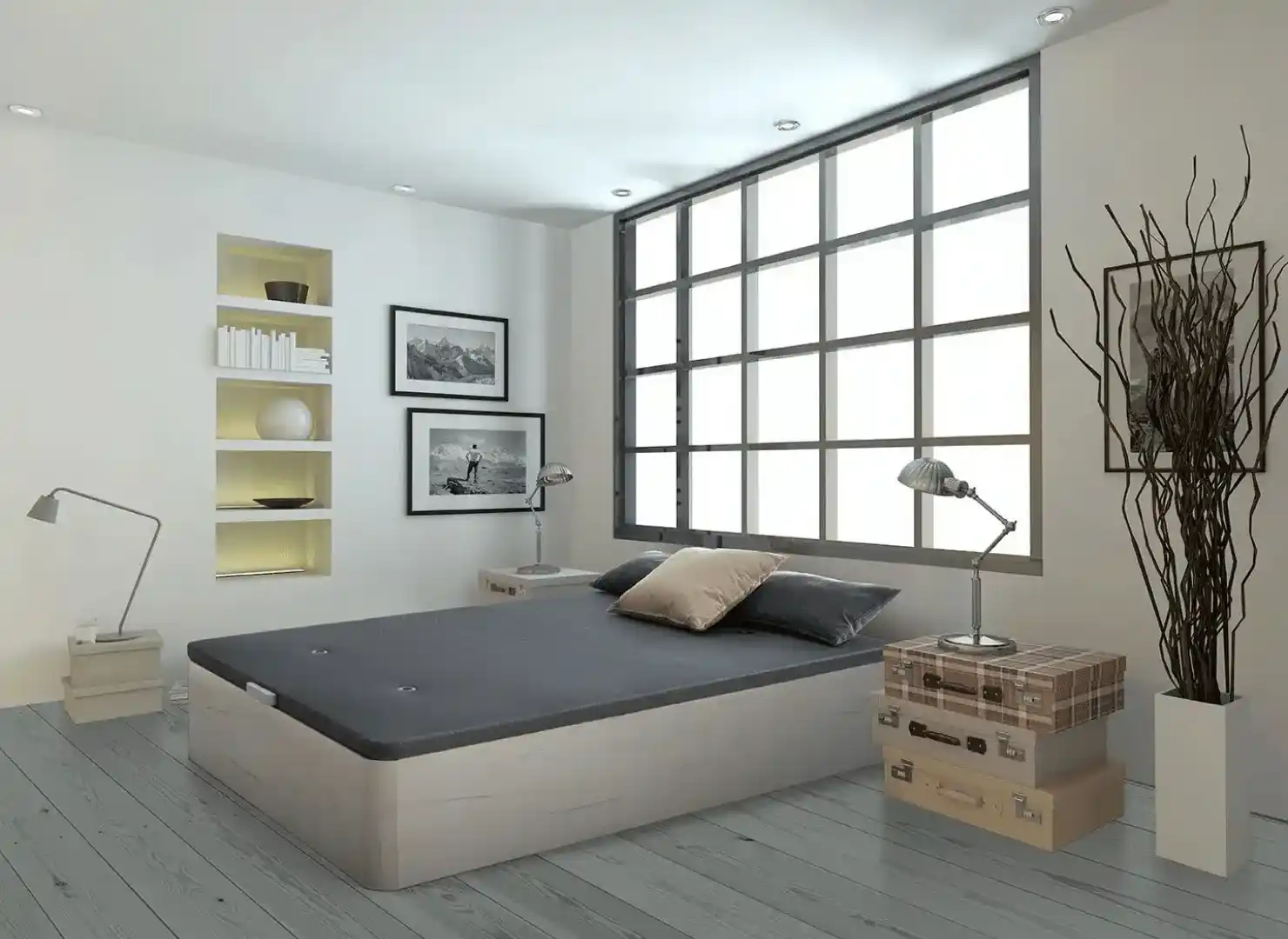 Todo el conjunto está orientado a maximizar el espacio disponible sin ocupar superficie adicional en la habitación. Si eres de gustos exigentes y bien pensados, solo debes considerar las medidas de los colchones para que el pack de canapé y colchón no supere la altura que deseas.