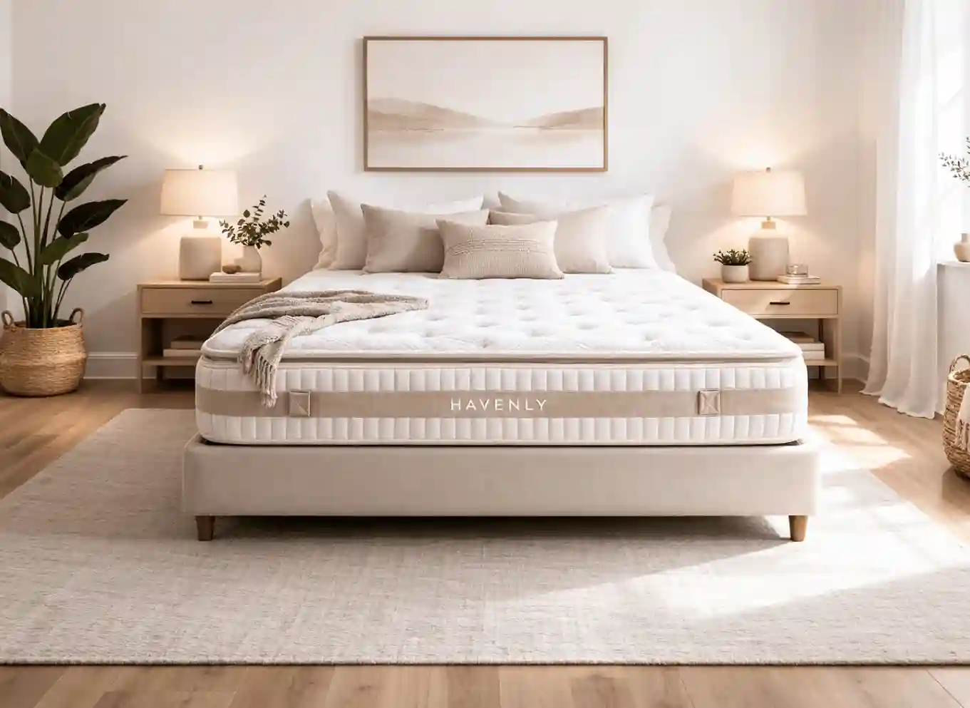 Havenly es un colchón de 32 cm con muelles ensacados LBI de 7 zonas, extra suavidad y HR de alta densidad. Ofrece alta adaptabilidad, firmeza estable y excelente independencia de lechos.