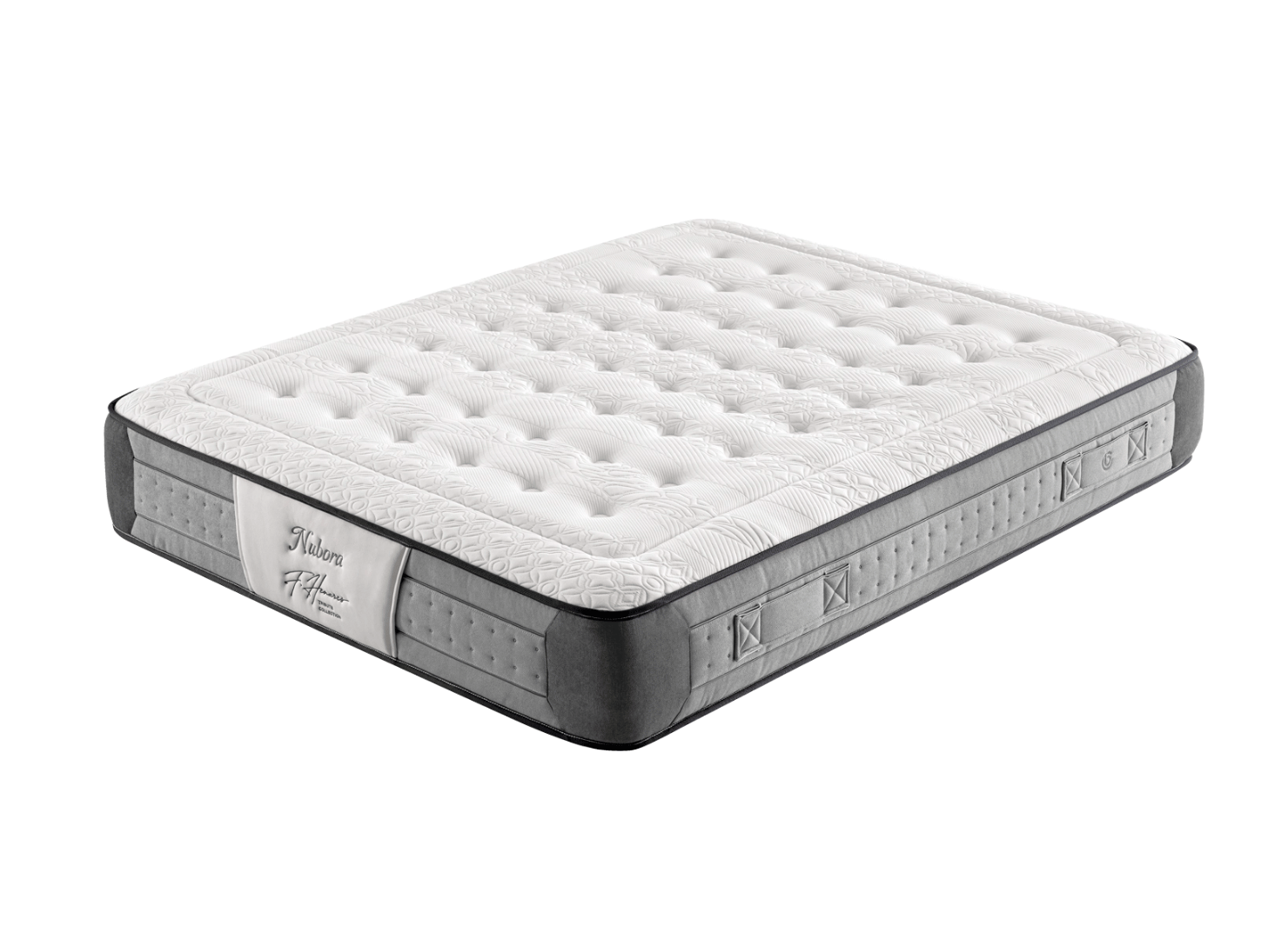 El Colchón Nubora es un modelo híbrido de 30 cm con muelles ensacados XBI y HC Plume 3 cm 30 kg en ambas caras. Ofrece alta adaptabilidad, independencia de lechos y confort reversible invierno/verano.