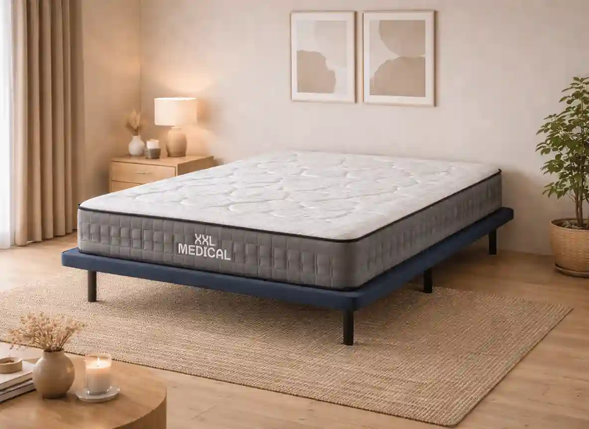 La clave de este pack está en la compatibilidad entre una base firme y ventilada y un colchón orientado al soporte corporal. Por una parte, la Base 3D mantiene una superficie estable y mejora la ventilación inferior. Por otra, el colchón XXL Medical aprovecha esta base sólida para ofrecer toda su capacidad de soporte sin perder estabilidad.
