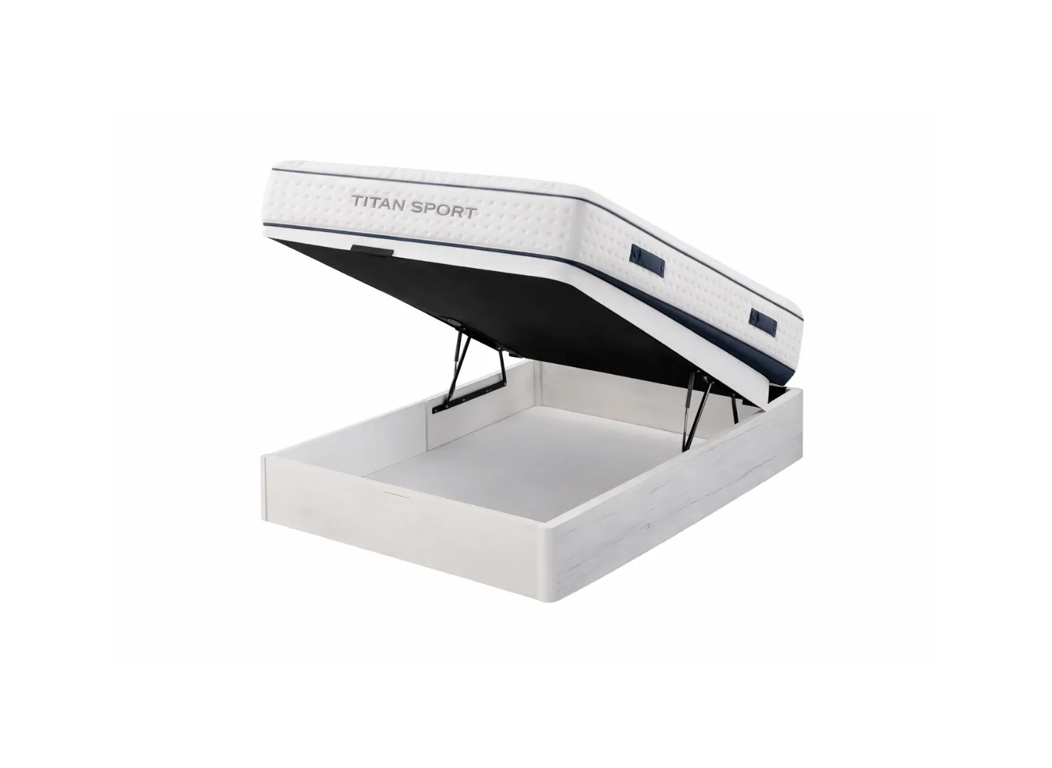 Su sistema de apertura hidráulica facilita el acceso a un amplio compartimento interior, ideal para guardar ropa de cama, mantas o textiles de uso ocasional. La tapa incorpora tejido 3D transpirable, lo que mejora la ventilación del colchón y ayuda a mantener un entorno más higiénico.