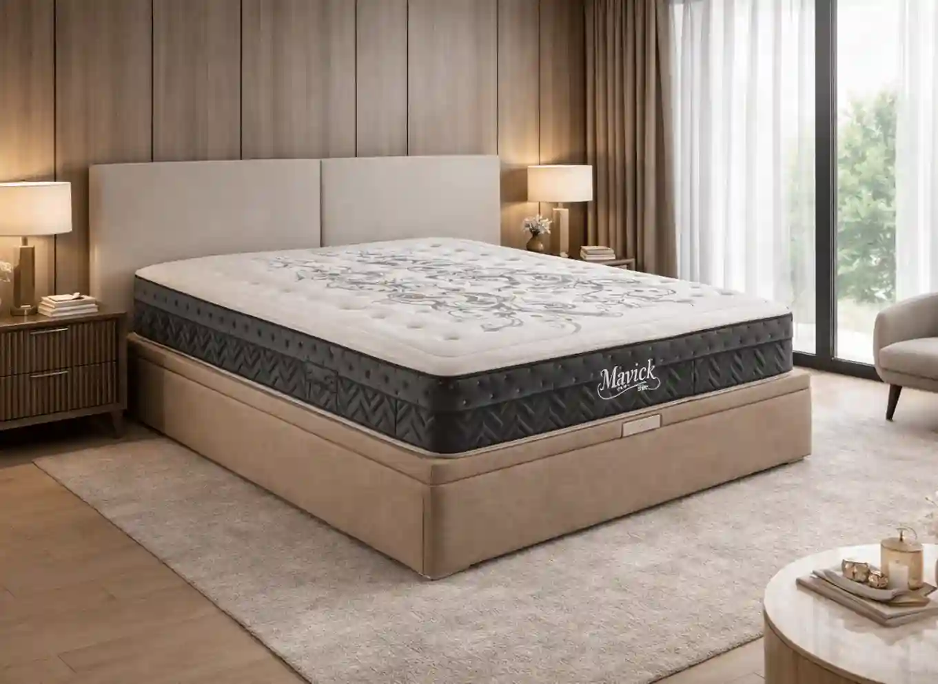 Por otro lado, el colchón Mavick es el elemento clave que define la experiencia de descanso de este pack. Con una altura de 32 cm, ofrece una estructura de gama alta que combina adaptabilidad, firmeza equilibrada y confort progresivo.