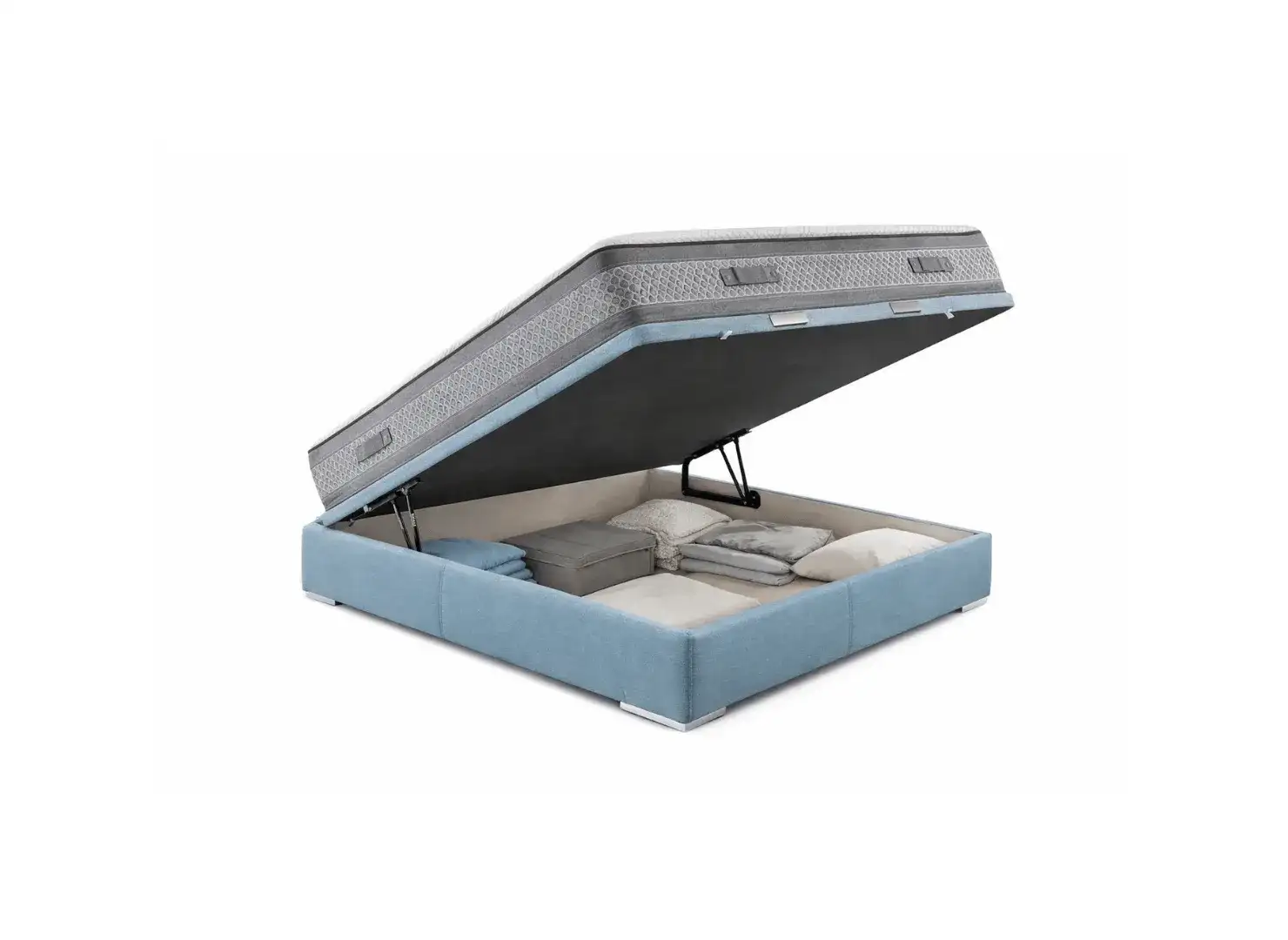 Su estructura de madera de 50 mm garantiza resistencia y durabilidad, mientras que su fondo de 16 mm aporta estabilidad al conjunto. Gracias a su sistema de apertura hidráulica, el acceso al espacio interior es cómodo y sencillo.