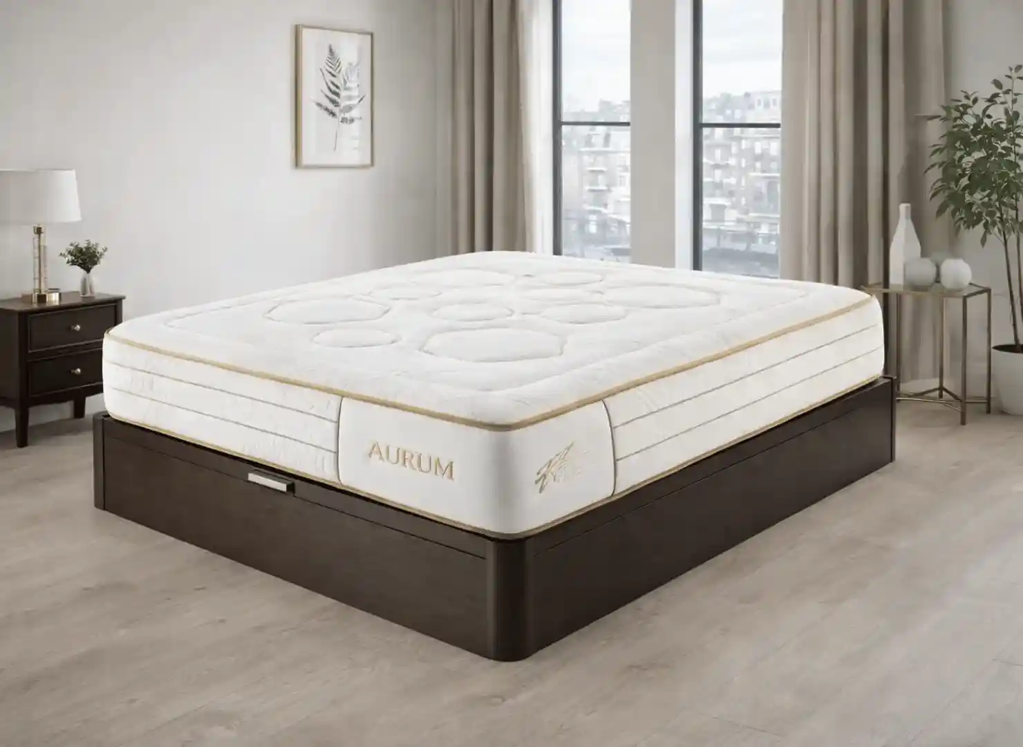 Por otra parte, el Colchón Aurum está diseñado para ofrecer un descanso confortable gracias a su combinación de materiales adaptativos y su núcleo de muelles ensacados. Este sistema permite que cada zona del colchón responda de forma independiente al peso del cuerpo, mejorando la ergonomía y reduciendo los puntos de presión.